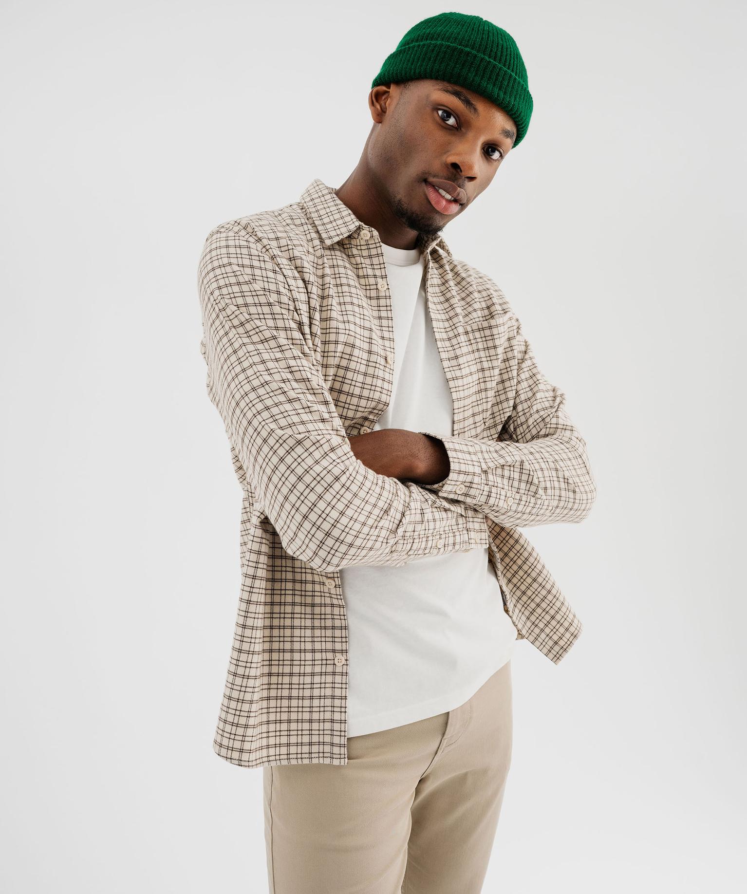 Laissez-vous séduire par cette chemise à manches longues en flanelle de coton douce et chaleureuse, parfaite pour la mi-saison comme pour l’hiver. Sa coupe regular assure un porté confortable au quotidien. La chemise homme affiche un col classique avec baleines amovibles, une poche plaquée à la poitrine et une base arrondie pratique pour la porter aussi bien rentrée que par-dessus le pantalon. Les bas de manches boutonnés réglables sur deux positions permettent d’ajuster l’aisance aux poignets. Une chemise à carreaux intemporelle, idéale avec un jean brut et des boots pour un look casual authentique, ou glissé sous un pull uni pour une touche plus citadine.