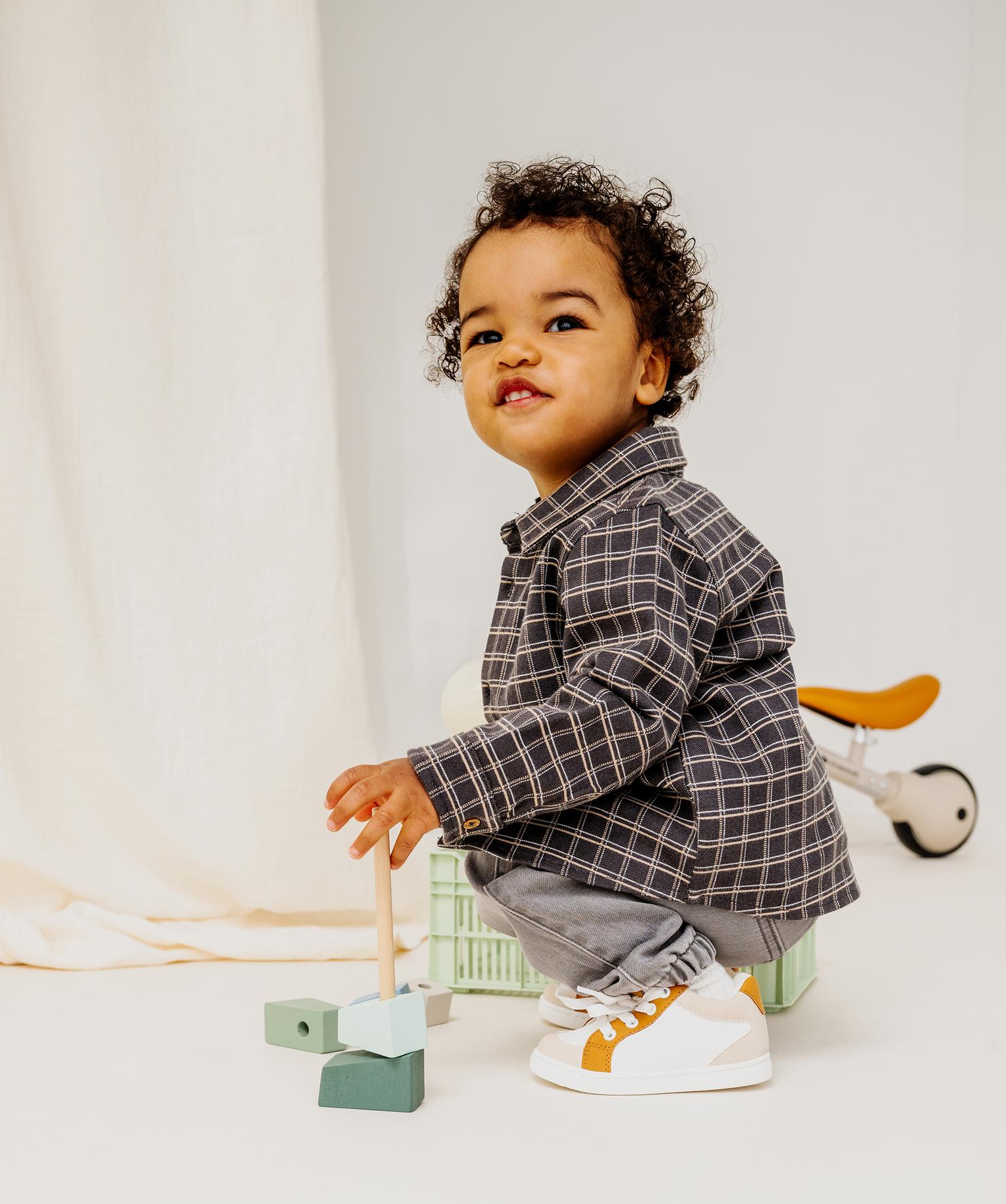 Offrez à votre petit garçon un look adorable et beaucoup de confort avec cette chemise à carreaux spécialement conçue pour accompagner ses premiers mouvements. Sa matière extensible assure une grande liberté de mouvement, idéale pour les journées actives comme pour les moments câlins. Cette chemise bébé garçon affiche un motif à carreaux intemporel qui s’adapte à une tenue habillée ou décontractée. Elle se porte avec un jean et des boots, ou avec un pantalon chino et des derbies. Cette chemise se ferme par de jolis petits boutons aspect bois qui ajoutent une touche authentique. Biais boutonnés aux poignets.