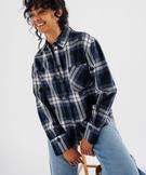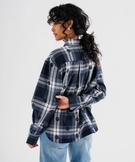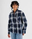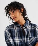 Chemise à carreaux et motifs brodés ajourés femme bleu