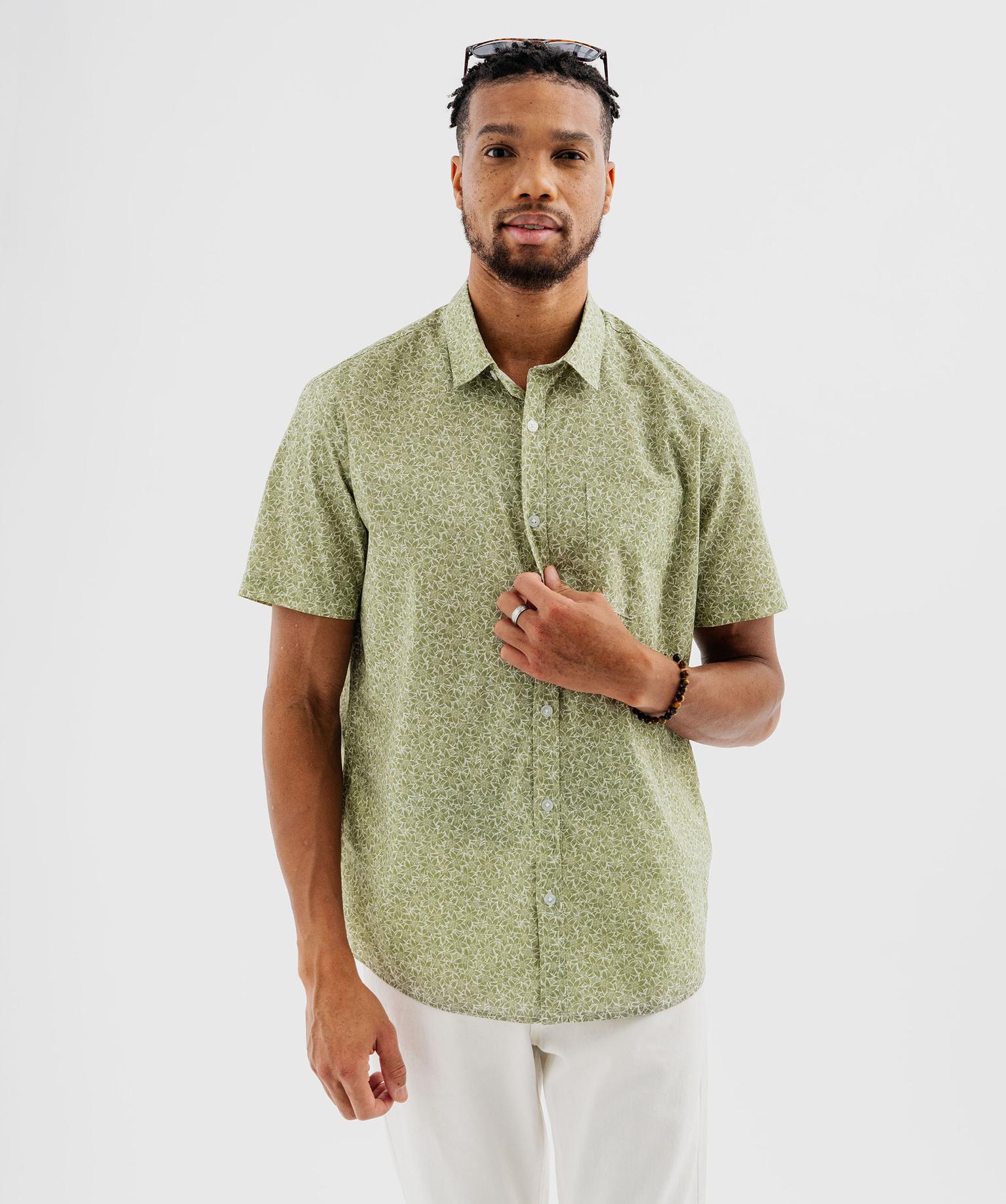 Chemise à manches courtes à motifs fleuris coupe regular homme vert