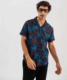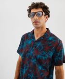 Chemise à manches courtes à motifs palmiers homme bleu fonce