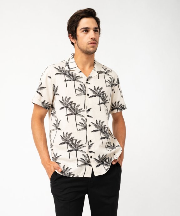 Au top pour les beaux jours, la chemise pour homme en voile de coton et col cubain ! Une chemise à manches courtes avec revers cousus, qui trouve sa place dans le dressing de ville comme dans la valise des vacances. Avec ses larges motifs palmiers contrastants et sa toile légère, elle apporte une touche de décontraction dans le vestiaire. Cette chemise d'été imprimée se porte sur un pantalon en lin et des mocassins et pour un look plus cool, avec un bermuda et une paire de sandales.