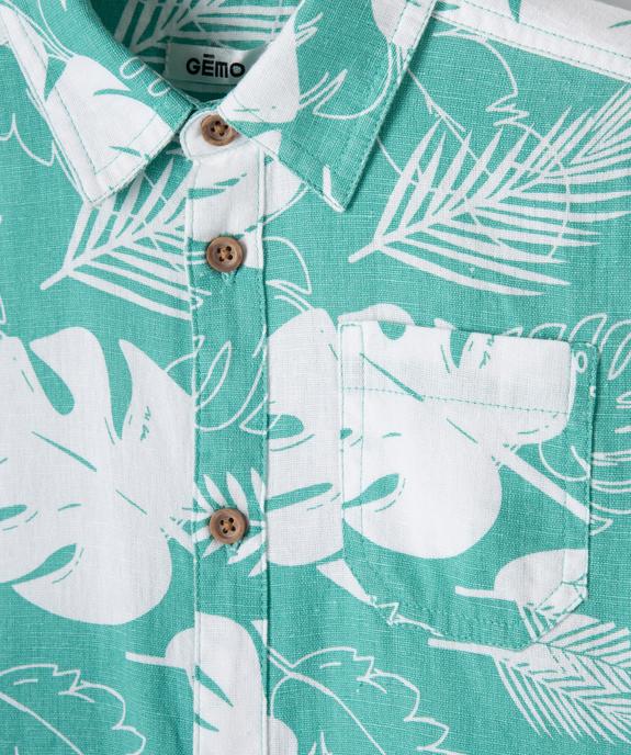 Chemise à manches courtes en coton/lin imprimée bébé garçon vert