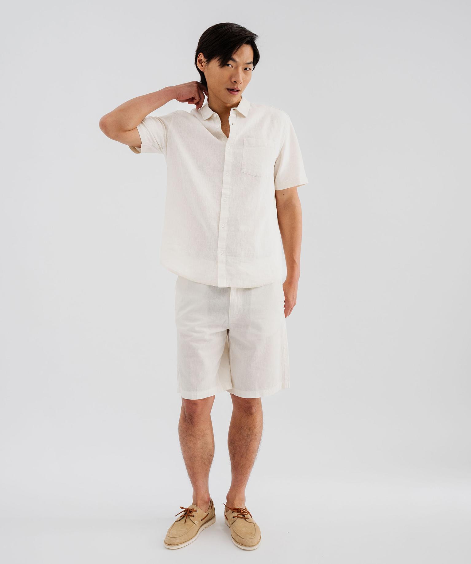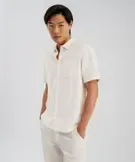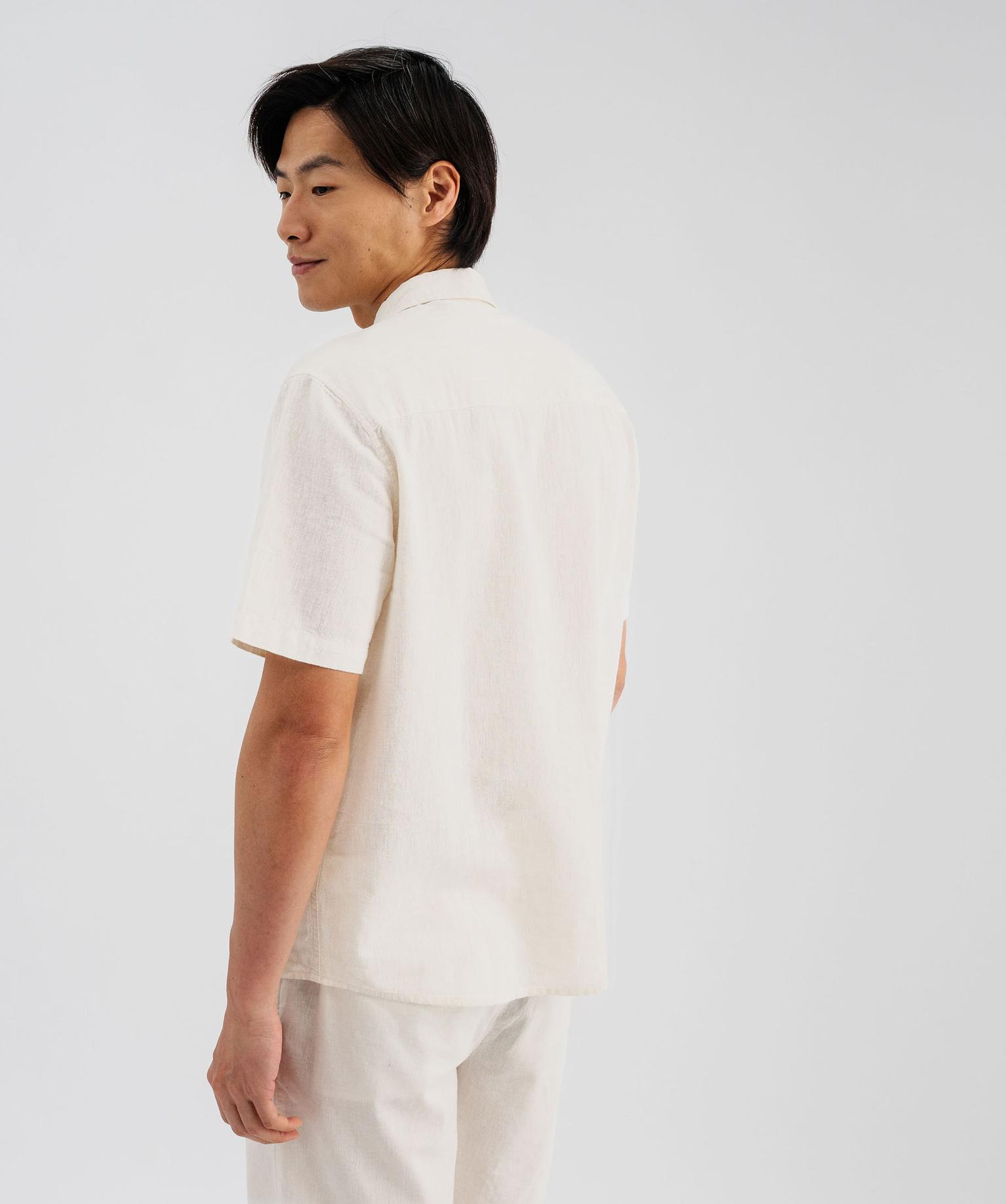 Chemise à manches courtes en lin et coton coupe regular homme blanc
