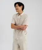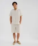 Chemise à manches courtes en lin et coton coupe regular homme ecru