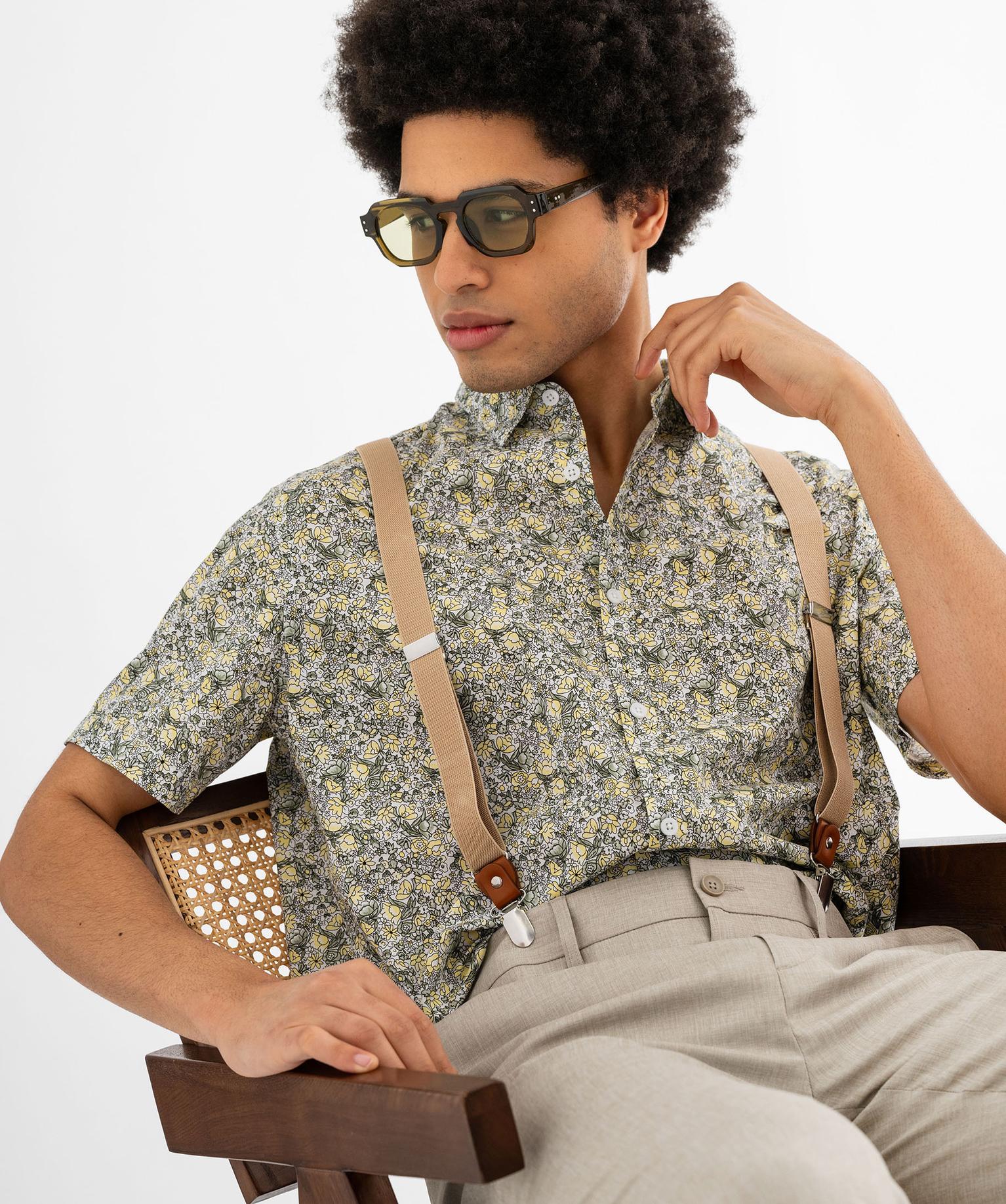 Beaucoup de charme et de fantaisie pour cette chemise fleurie aux couleurs fraîches ! Cette chemise homme apporte une touche de raffinement à votre pantalon en lin ou votre bermuda préféré ! Vous allez adorer la porter ouverte sur un tee-shirt uni façon surfeur. Cette chemise à manches courtes est fabriquée dans une fine toile de coton dans une coupe droite pour vous apporter un maximum de confort cet été ! Base arrondie. Col chemise classique et souple.