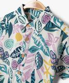 Cette ravissante chemise à manches courtes va plaire aux bambins. La chemise bébé garçon est confectionnée dans une maille viscose ultra fluide, légère, agréable à porter. Elle est parsemée de petits motifs fantaisie d'inspiration tropicale dans des couleurs vibrantes. Elle présente une coupe droite, base droite, un col chemise classique et une fermeture par boutons contrastants. Avec son look décontracté, cette chemise estivale se porte fermée ou ouverte par-dessus un tee-shirt uni.