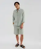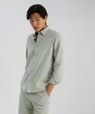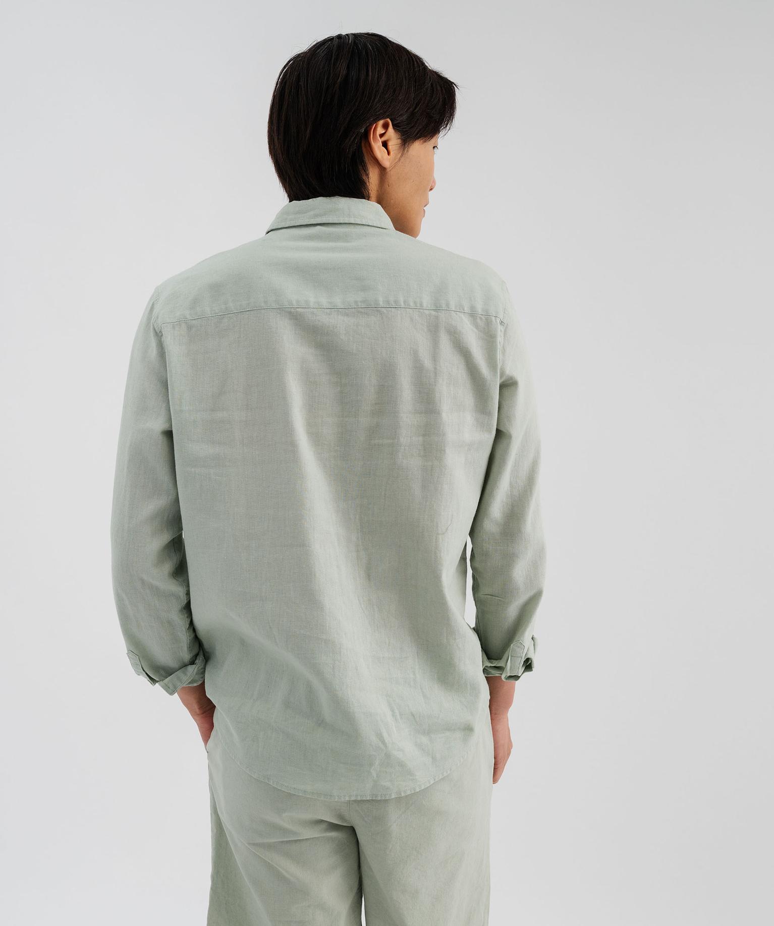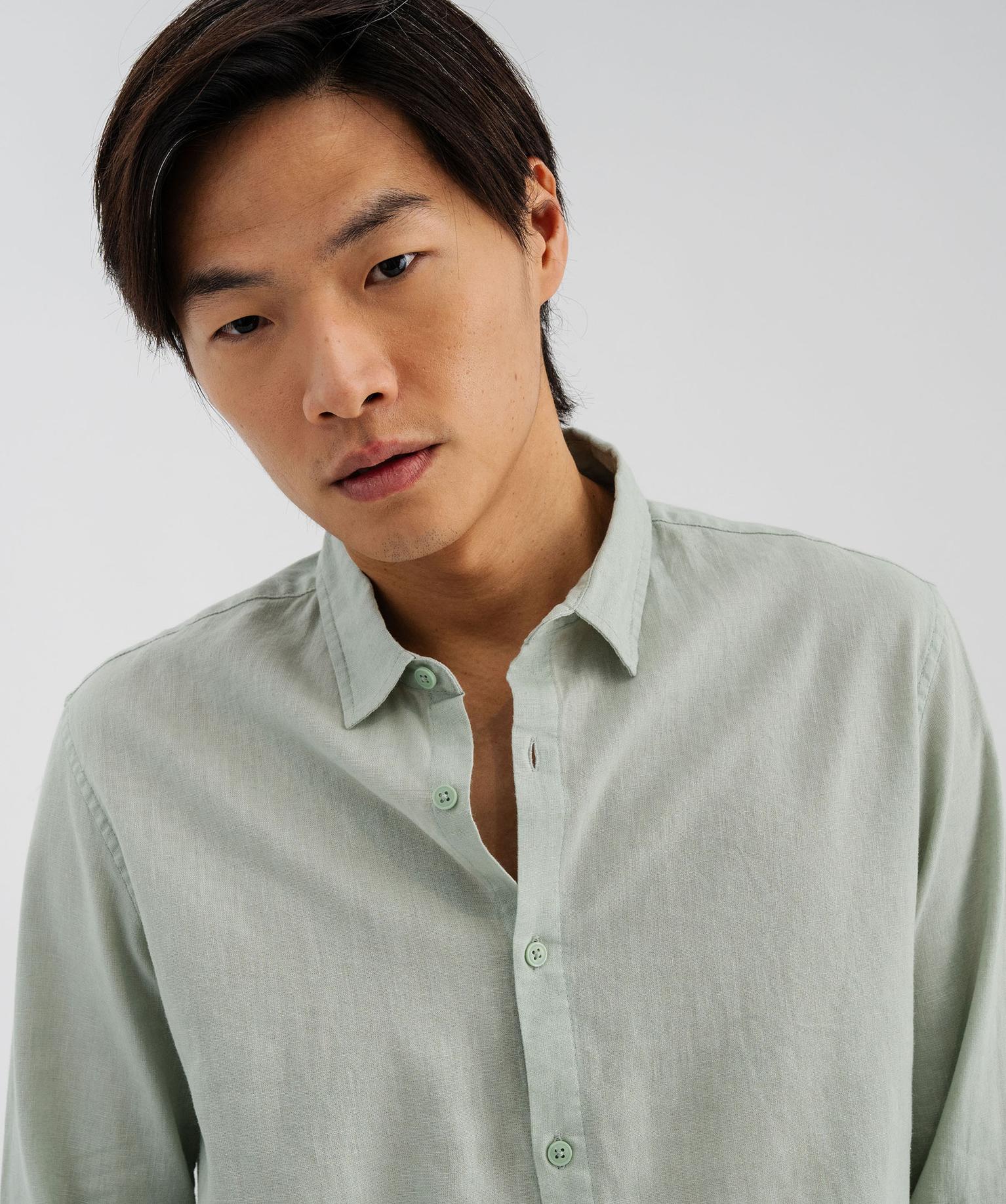 Chemise à manches longues en lin et coton coupe regular homme vert clair