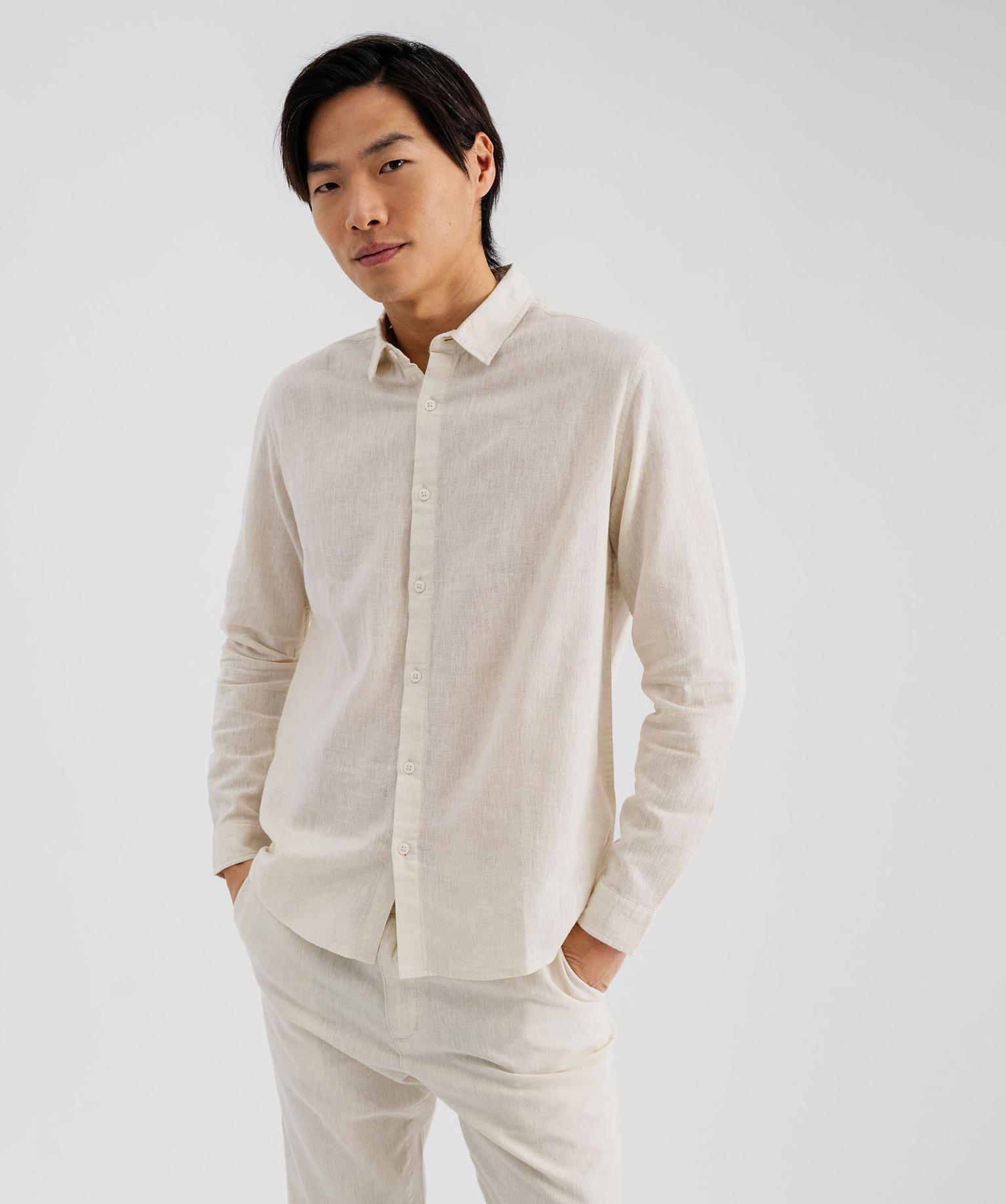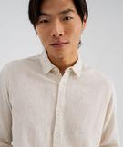 Chemise à manches longues en lin et coton coupe regular homme ecru