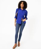 Indispensable dans le dressing d’une femme élégante, la chemise unie en coton. Une chemise ample qui sera la base de nombreuses tenues chics ou casual. Elle se porte avec un jean et des baskets comme avec un ensemble pantalon et veste de costume. Cette chemise femme possède une poches poitrine et se ferme par de jolis boutons. Larges biais boutonnés aux poignets.