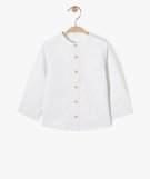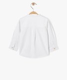 Offrez à votre bout de chou une allure casual chic au top de la mode grâce à cette chemise à col mao. Une chemise bébé garçon avec poche plaquée sur la poitrine et petits boutons contrastants. Une chemise unie avec pli plat dans le milieu du dos. Ses doubles surpiqûres lui confèrent une allure ultra décontractée. Elle se porte avec un jean et une paire de baskets, mais aussi avec un pantalon en lin et des mocassins pour un style plus élégant. Poignets boutonnés. Bas arrondi.