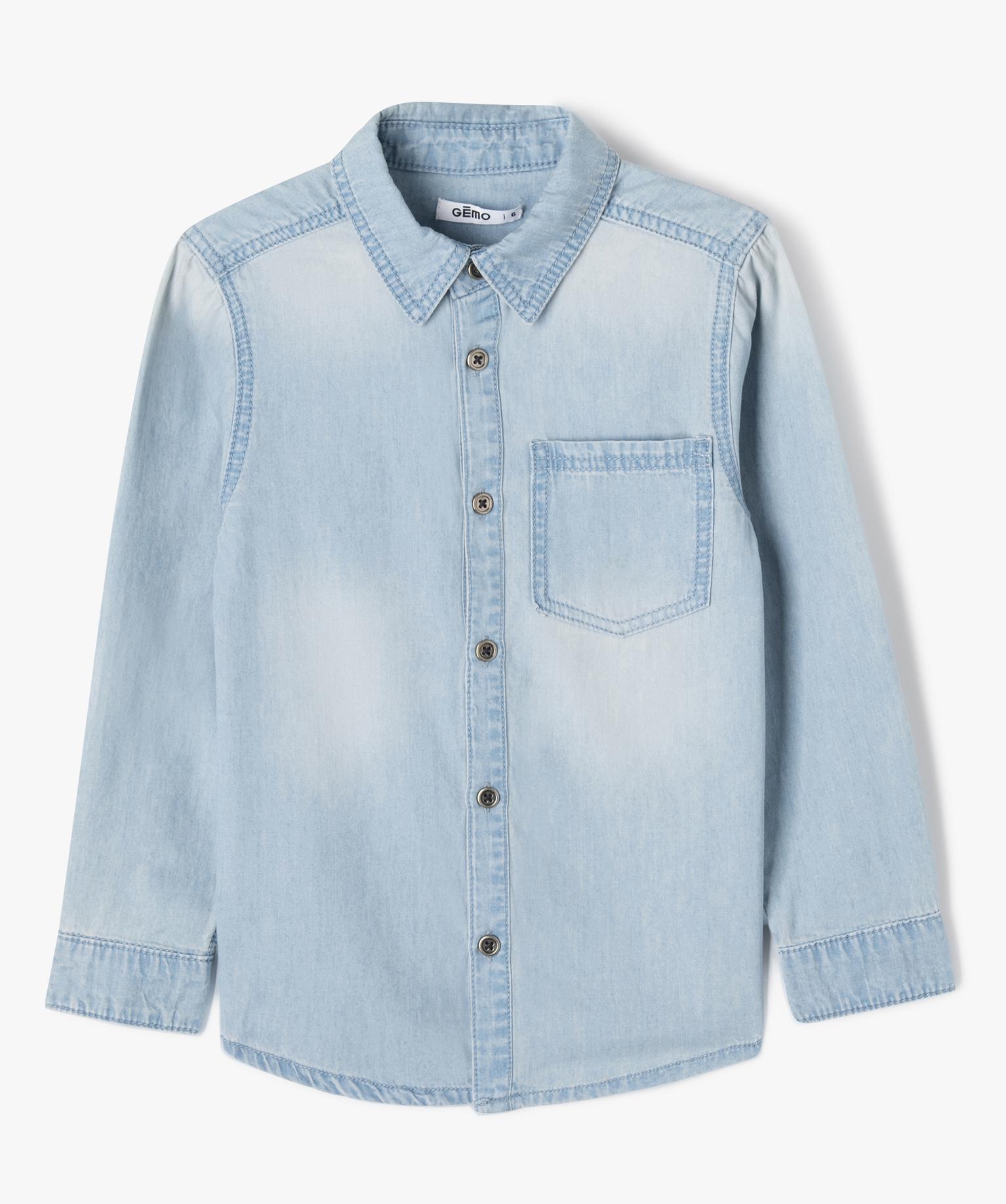Chemise chambray à manches longues garçon bleu