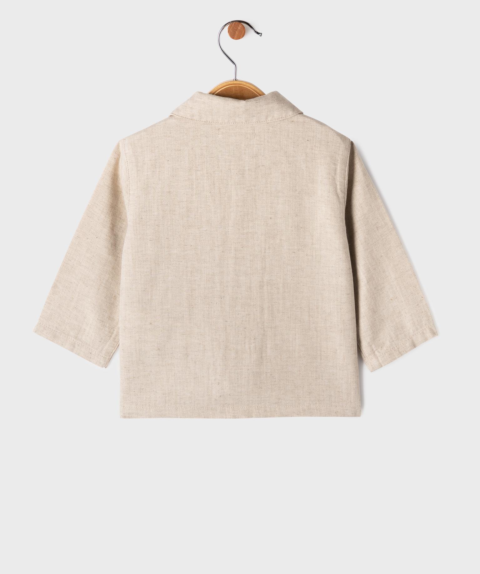 Craquez pour le style chic et authentique de cette jolie chemise pour bébé garçon en coton et lin. Proposée dans un coloris naturel facile à associer, elle séduit par sa coupe droite confortable et sa fermeture par une rangée de petits boutons sur l’avant. Elle est agrémentée de deux fausses poches raglan qui apportent une touche d’élégance discrète. Une chemise pleine de charme à porter avec le pantalon assortie, pour composer une tenue de cérémonie bébé à la fois raffinée et décontractée pour les grandes comme les petites occasions.
