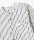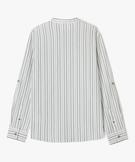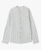 Cette jolie chemise rayée entrera dans la composition de nombreux looks casual chic pour les ados. Une chemise en lin et coton dotée d’un joli col Mao et de manches retroussables grâce à une patte qui se boutonne sur le dessus des bras. Cette chemise garçon arbore de fines rayures tricolores, elle est agrémentée d’une poche poitrine et fermée par des boutons aspect bois. Une chemise à col Mao à porter avec un pantalon en lin et une paire de mocassins.