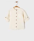Chemise col rond en gaze de coton à manches retroussables bébé garçon blanc
