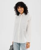 La chemise unie fait partie des essentiels du dressing féminin. Cette chemise pour femme séduit par sa coupe oversize particulièrement tendance et confortable. Confectionnée en toile de coton, elle affiche un look sobre et élégant et des détails soignés : manches terminées par un large biais boutonné aux poignets, pli plat dans le dos et boutons aux reflets nacrés. Grâce à son bas arrondi, cette chemise oversize peut facilement être portée à l'extérieur d'un jean pour un look décontracté ou rentrée dans un pantalon de tailleur pour une allure plus formelle.