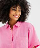 Cette chemise pour femme présente une coupe moderne, à la fois large et courte, idéale pour un look décontracté. La chemise est équipée de manches courtes avec revers cousus et d'un petit col classique souple. Elle possède également une grande poche plaquée à la poitrine. Confectionnée en double gaze gaufrée, la chemise est à la fois souple et douce au toucher. La base arrondie avec fentes latérales souligne la silhouette. Vous allez craquer pour sa couleur chatoyante qui donnera du peps à vos tenues estivales. Pli creux au dos.