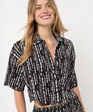 Gémo bouleverse les codes de la chemise femme traditionnelle avec cette chemise imprimée. Confectionnée dans une maille plissée, elle possède des manches courtes avec épaules tombantes et un large col doublé. Dotée de finitions sans coutures, cette chemise ample et courte apporte un vent de fantaisie dans votre collection de basiques. Elle se ferme par une rangée de boutons et se porte avec un pantalon taille haute.