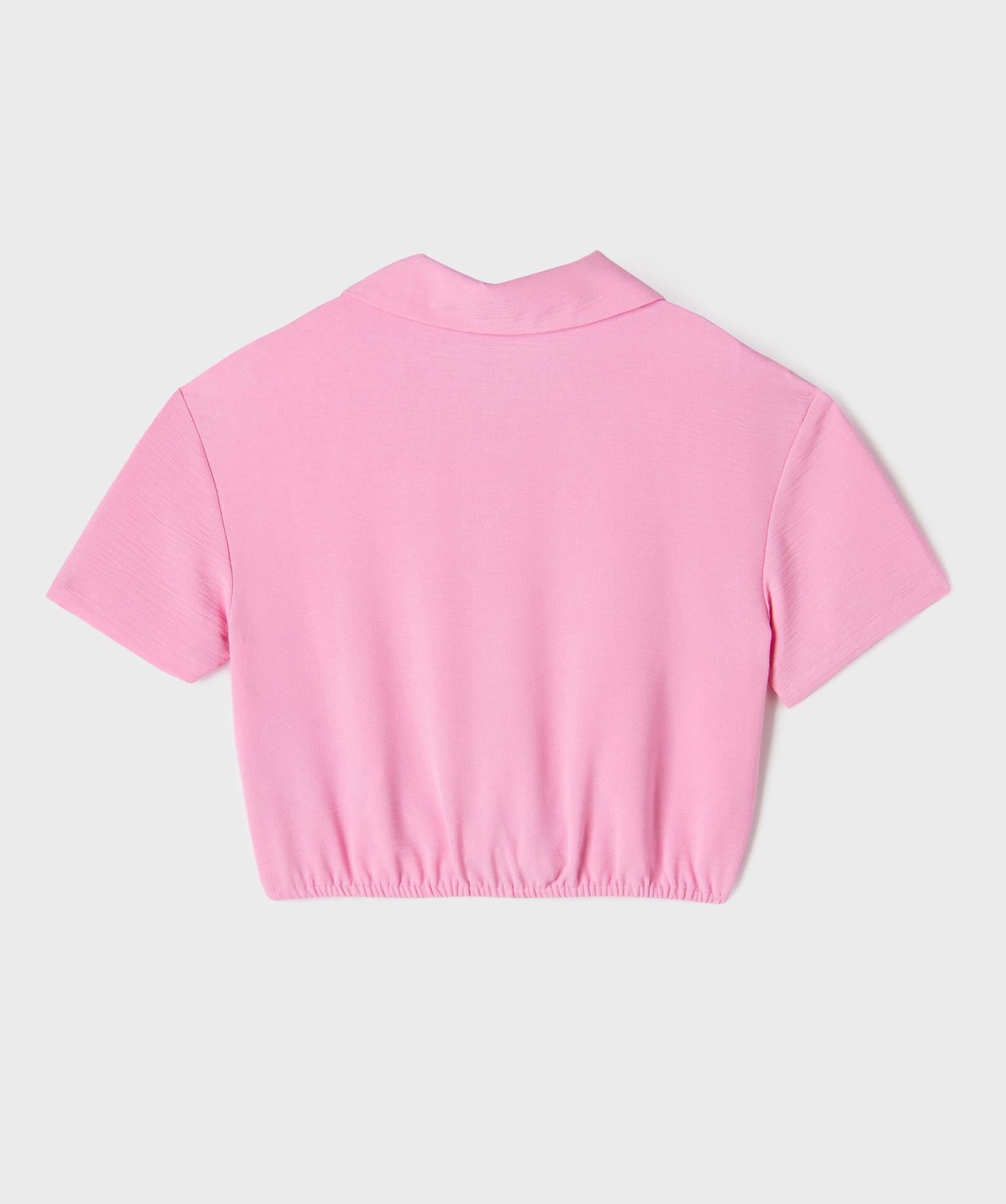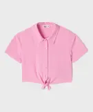 Chemise courte blousante en crêpe froissé fille rose vif