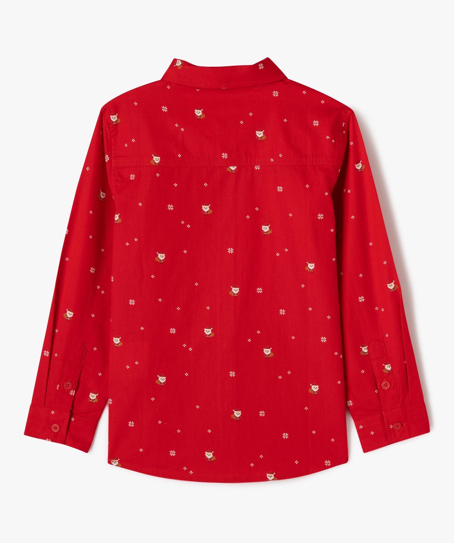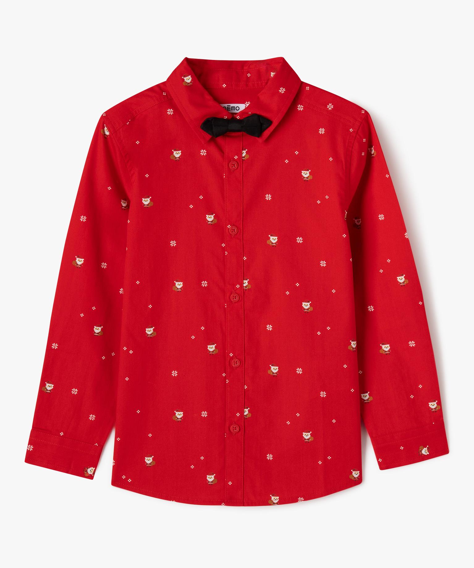 Apportez une touche festive à la garde-robe de votre enfant avec cette chemise de Noël originale. Confectionnée en coton, elle est parsemée de motifs Père Noël pixellisés, parfaite pour la saison des fêtes. Vendue avec son nœud papillon assorti, la chemise garçon permet de composer facilement une tenue élégante pour les célébrations. La chemise manches longues présente une coupe droite confortable avec un col classique, une boutonnière ton sur ton et des poignets boutonnés.
