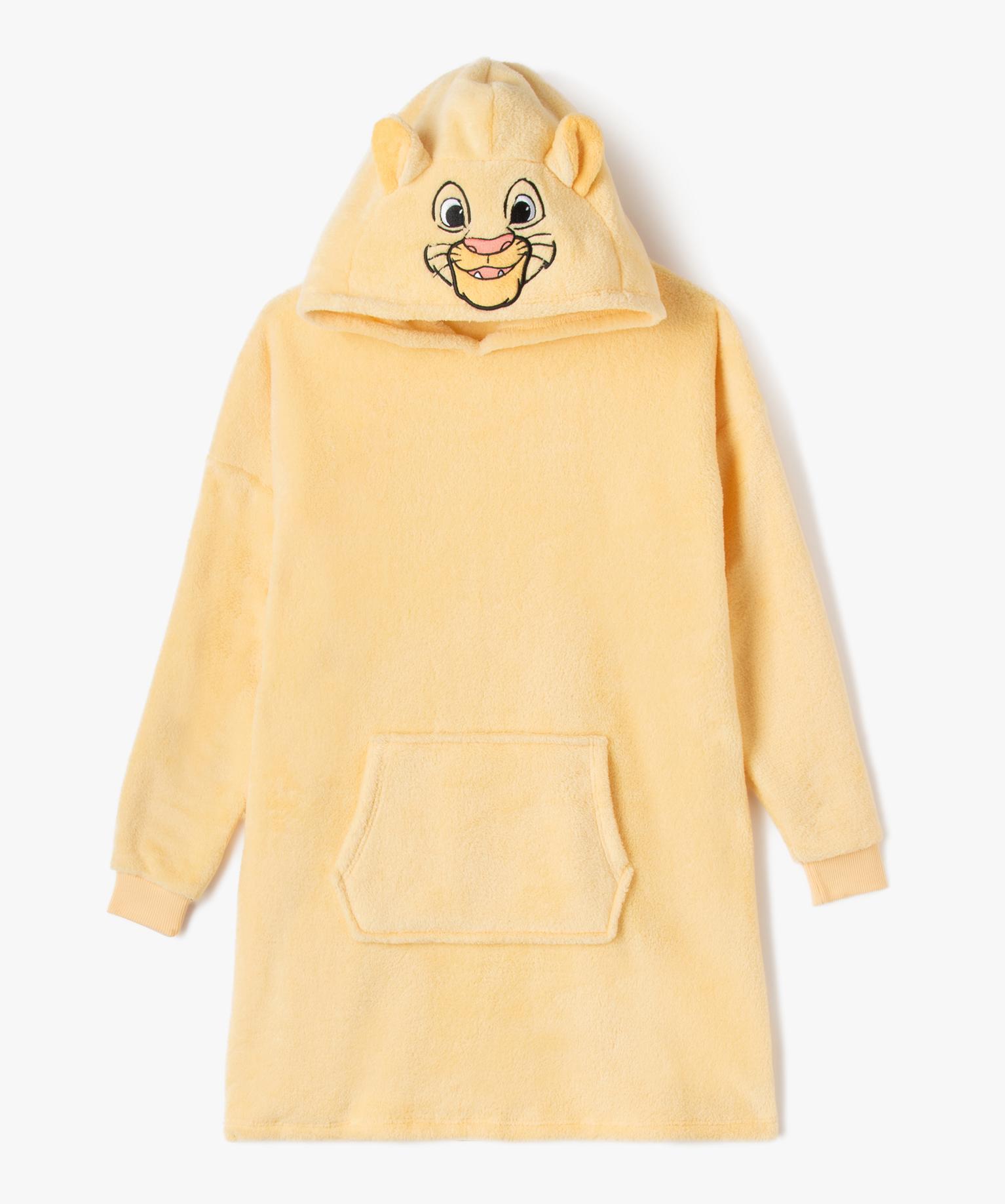 Chemise de nuit à capuche en maille peluche motif Le Roi Lion fille - Disney jaune