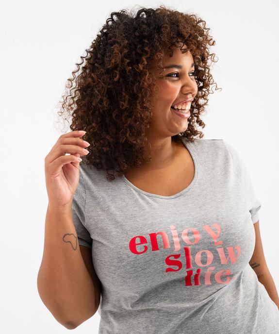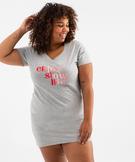 Chemise de nuit à manches courtes avec motifs femme grande taille gris chine