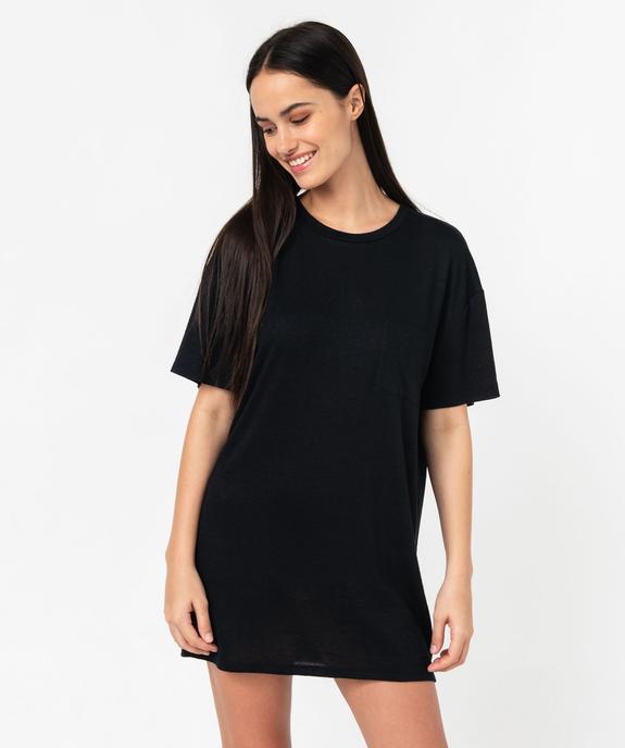 Chemise de nuit à manches courtes en maille douce femme noir