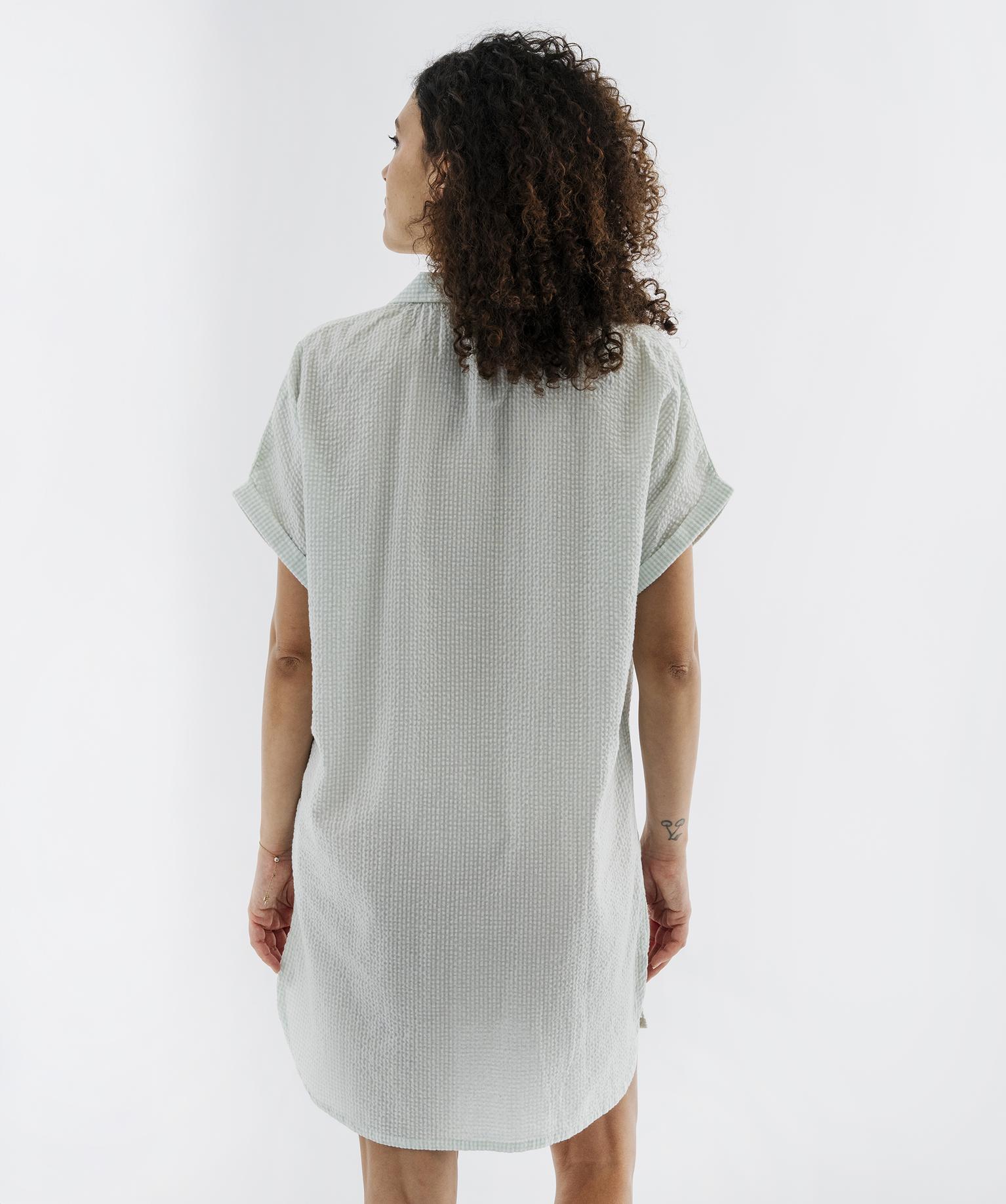 Chemise de nuit en seersucker à petits carreaux femme bleu