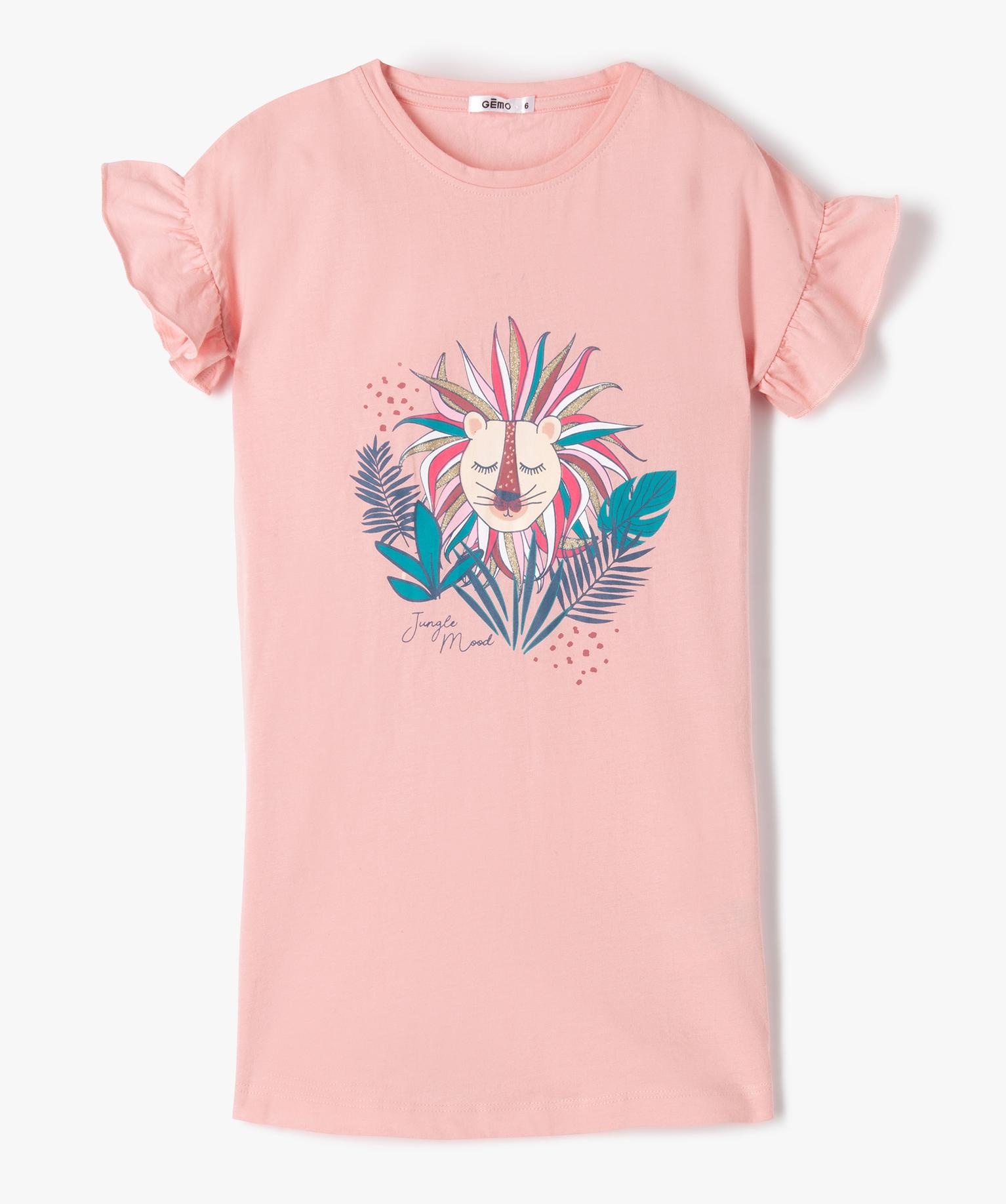 Pour toutes les petites fashionistas qui aiment être élégantes en toutes circonstances, cette chemise de nuit fille sera parfaite. Une nuisette à manches courtes aux finitions volantées, déclinée dans un coloris girly et agrémentée d’un joli motif jungle pailleté sur le buste. Une chemise de nuit pailletée idéale pour passer des nuits paisibles et faire de jolis rêves. Col rond.