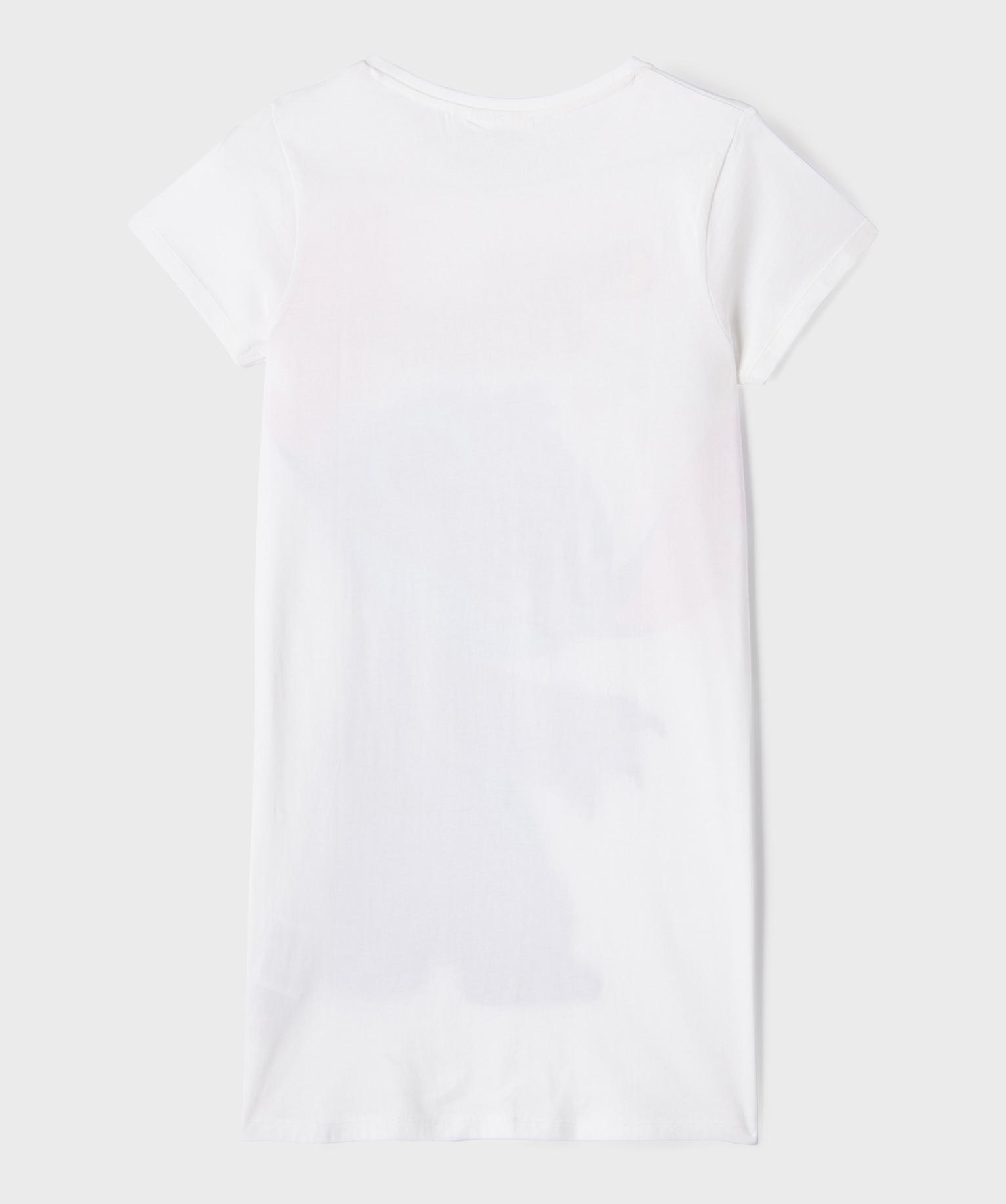 Chemise de nuit forme tee-shirt en jersey de coton imprimé fille - Stitch blanc
