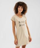 Chemise de nuit forme tee-shirt manches courtes femme beige chine
