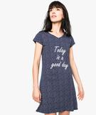 Simple et indispensable en toutes saisons, la chemise de nuit à manches courtes ! Avec son imprimé fun et féminin et son large décolleté en V, c'est un modèle flatteur pour la silhouette qui n'en est pas moins confortable grâce à a coupe légèrement évasée et sa matière tee-shirt extensible. Une nuisette femme à porter seule ou combiner à un short de pyjama en jersey pour un confort optimal ! Une chemise de nuit imprimée souple et ultra douce.