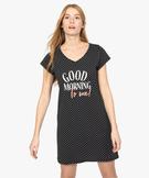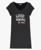 Simple et indispensable en toutes saisons, la chemise de nuit à manches courtes ! Avec son imprimé fun et féminin et son large décolleté en V, c'est un modèle flatteur pour la silhouette qui n'en est pas moins confortable grâce à a coupe légèrement évasée et sa matière tee-shirt extensible. Une nuisette femme à porter seule ou combiner à un short de pyjama en jersey pour un confort optimal ! Une chemise de nuit imprimée souple et ultra douce.