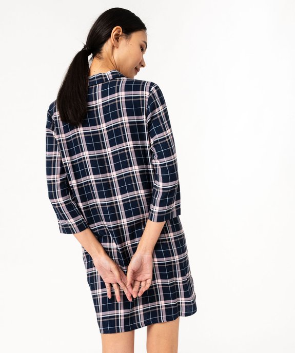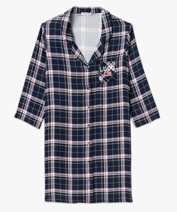 Chemise de nuit liquette à carreaux et manches 3/4 femme - LuluCastagnette marine