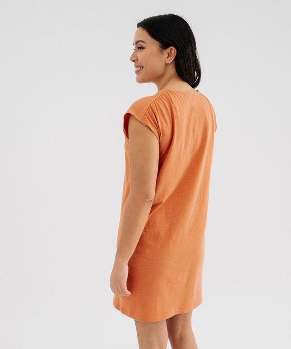 Chemise de nuit manches courtes à col V lacé femme orange