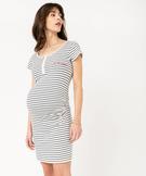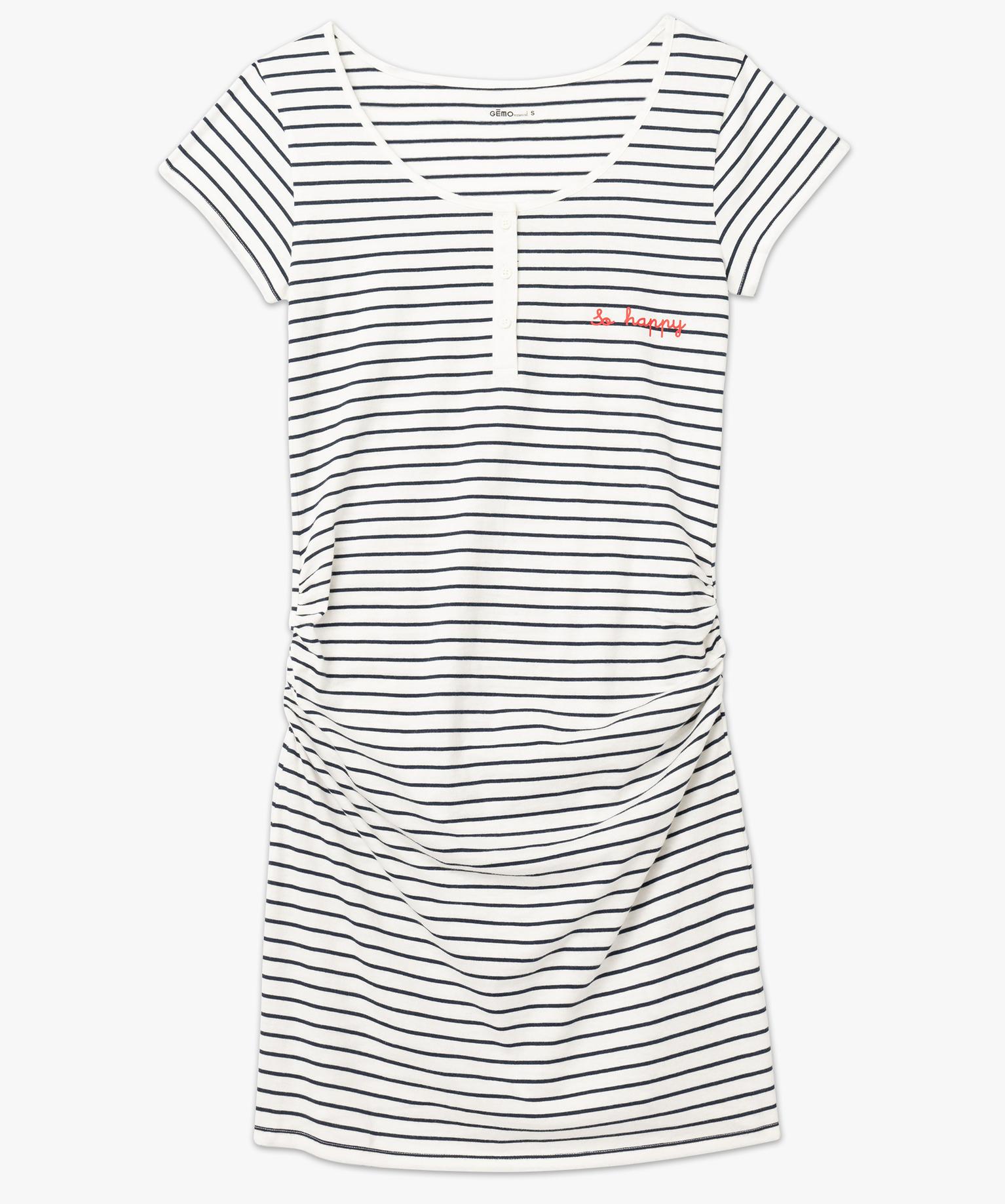 Chemise de nuit rayée à manches courtes spécial maternité bleu fonce