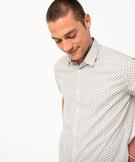 Avec ses petits motifs graphiques, ses manches courtes et sa coupe droite ample, cette chemise pour homme se porte idéalement ouverte sur un tee-shirt ou fermée avec un bermuda en lin, pour une allure casual chic. La chemise à manches courtes possède un col classique souple, une base arrondie et se ferme à l'aide d'une boutonnière.