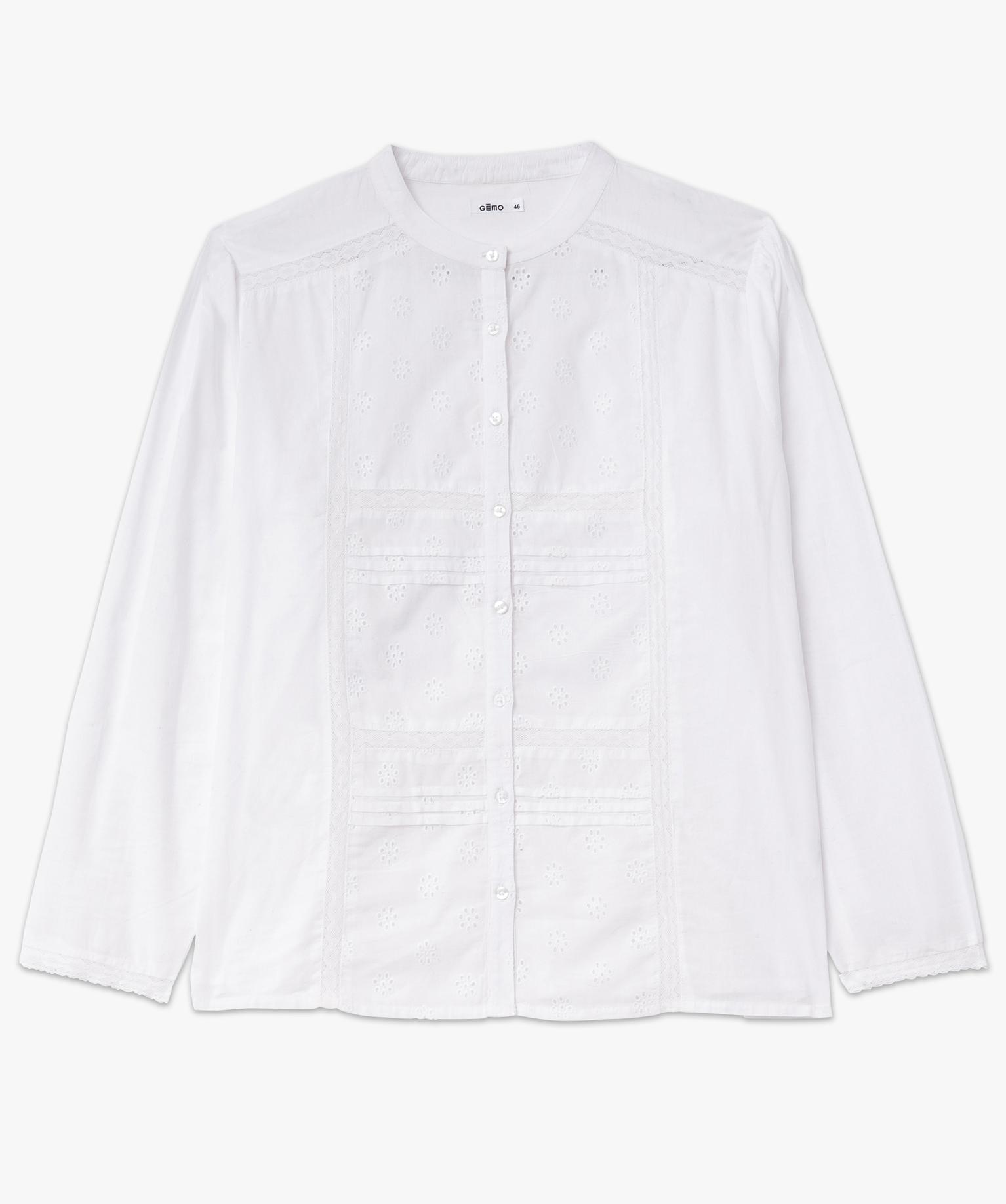 Chemise en coton avec broderie et dentelle femme grande taille[MISSING] blanc