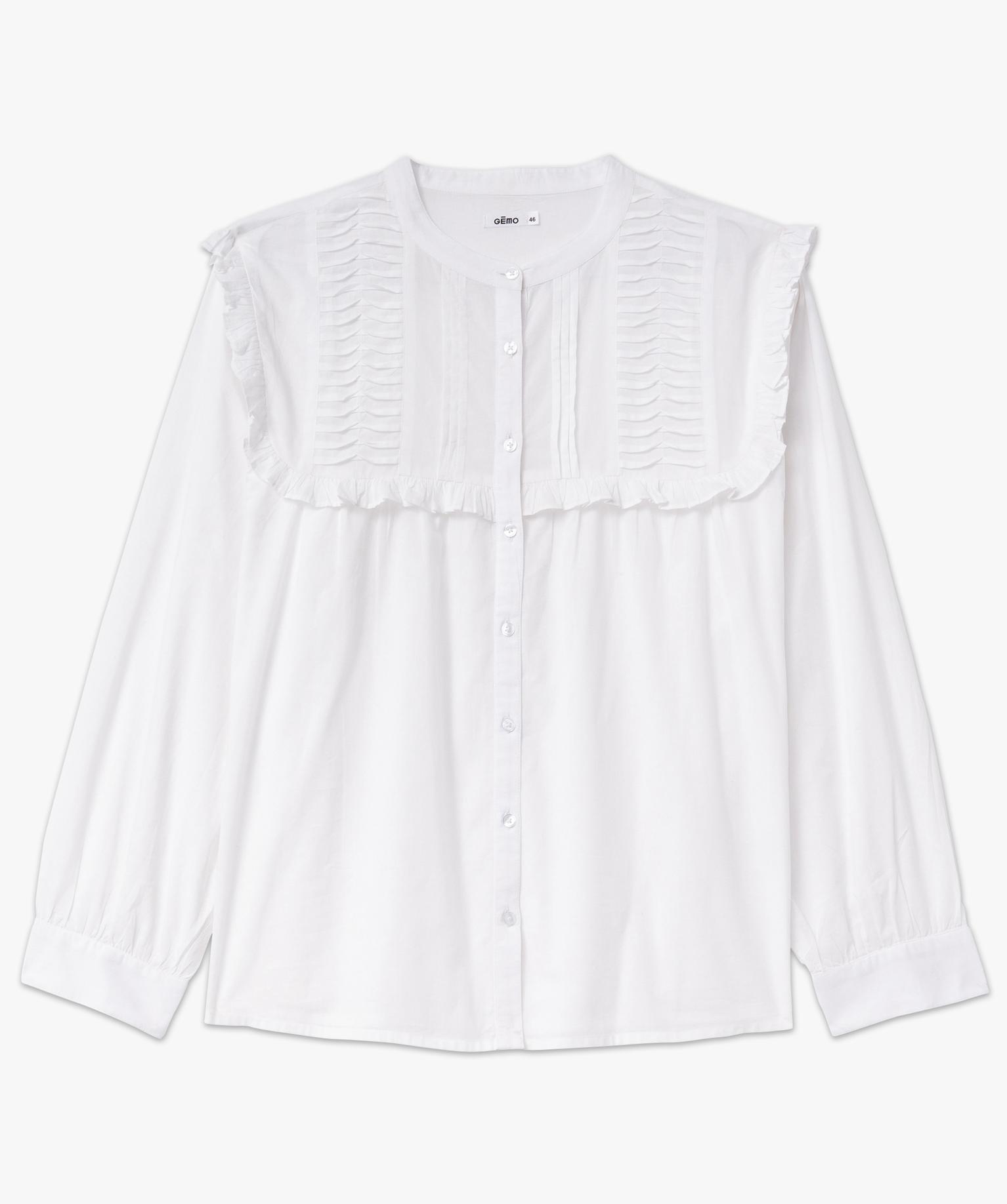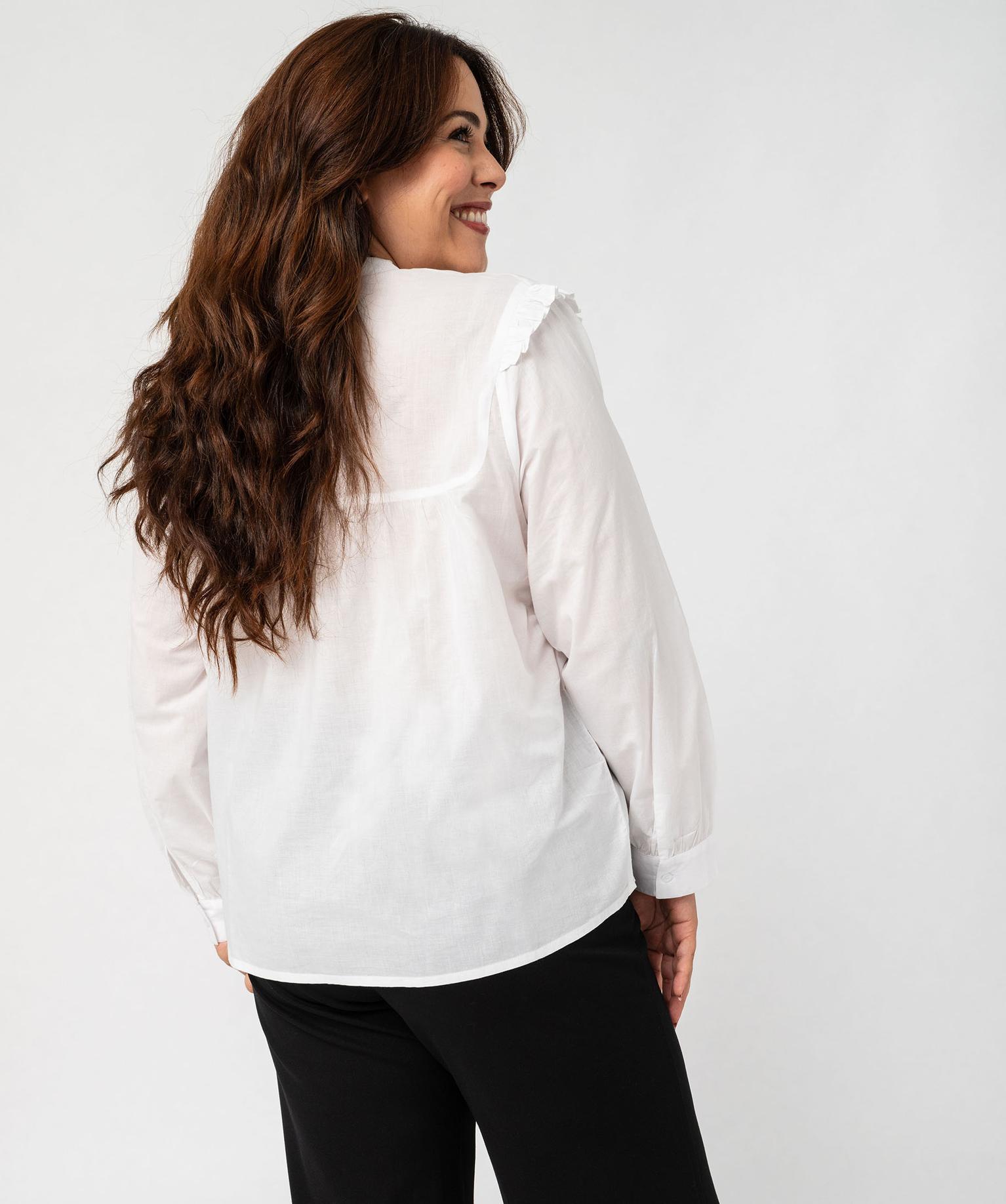 Chemise en coton avec plastron froncé femme grande taille blanc