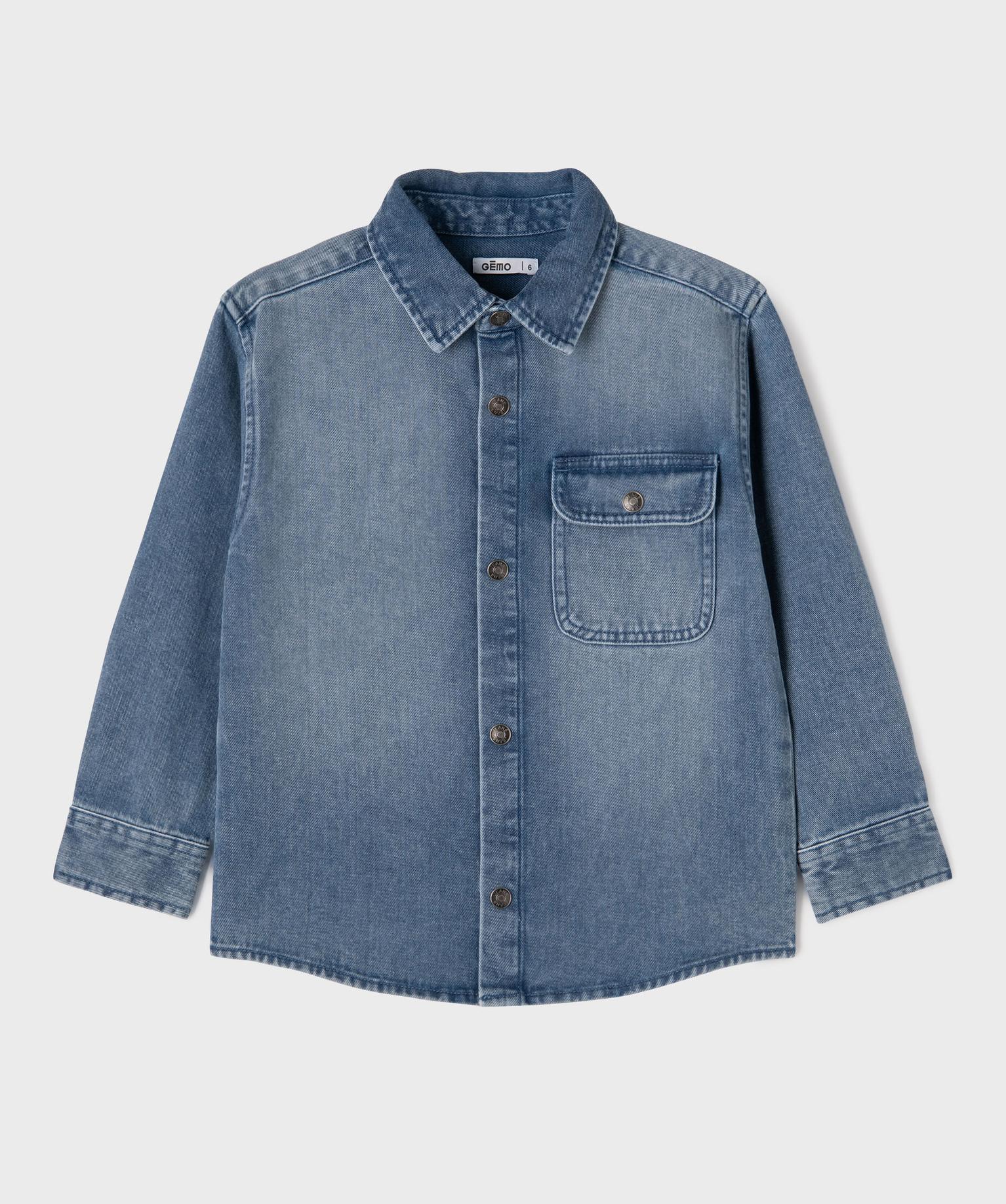 Incontournable du dressing garçon, la chemise en jean revient en force ! Avec ses boutons pression et sa matière en denim souple, elle combine style et confort. Cette chemise garçon affiche un coloris délavé et une poche à rabat sur la poitrine pour encore plus de style. Ses manches fermées aux poignets par un bouton pression, se portent longues ou retroussées pour une allure résolument décontractée. Cette chemise en denim se porte seule ou en surchemise sur un tee-shirt, pour un look casual tendance.