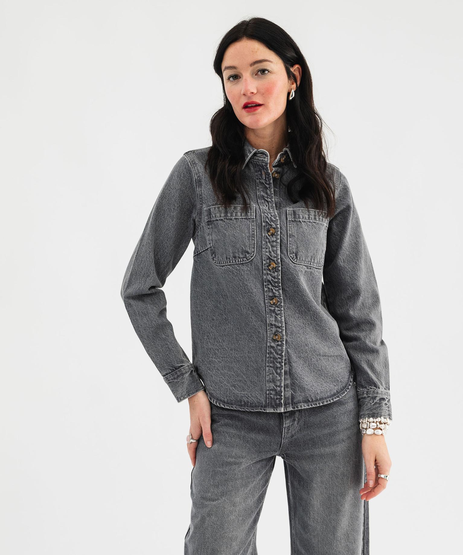 Chemise en jean en denim délavé et épais femme gris