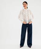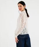 Chemise en maille ajourée et col volanté femme blanc