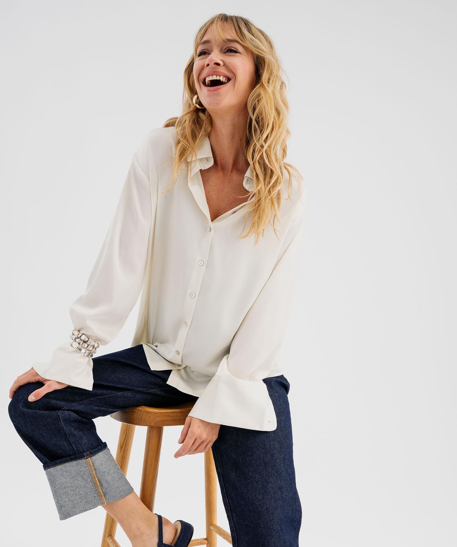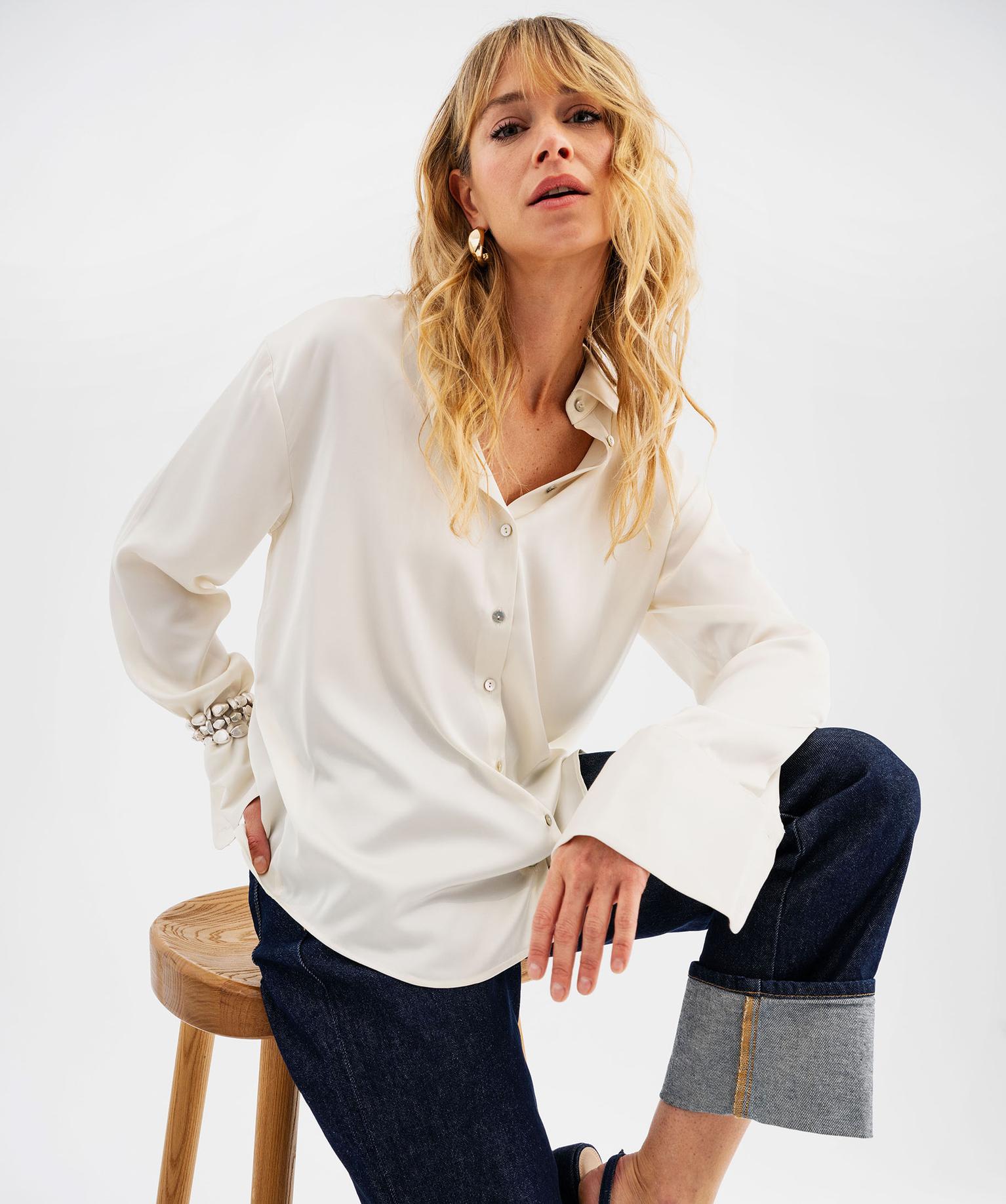 Élégante et fluide, la chemise en satin est une pièce phare pour un look raffiné en toute occasion. Avec sa texture soyeuse et son éclat subtil, elle apporte une touche de sophistication à chaque tenue. Avec sa coupe droite, ses manches longues et son col classique cette chemise femme offre un tombé impeccable et un style intemporel. Confectionnée dans une matière légèrement extensible, elle reste confortable en toutes circonstances. On porte ce chemisier uni avec un pantalon tailleur pour une allure chic ou avec un jean pour un look casual et lumineux. Fermeture par boutons nacrés. Larges biais boutonnés aux poignets. Bas arrondi.