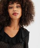 Chemise en voile à motifs plumetis coupe courte femme noir