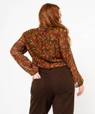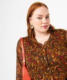 Cette jolie chemise imprimée va illuminer votre dressing par ses couleurs chatoyantes et ses fines rayures pailletées. Une chemise pour femme grande taille (du 46 au 54) ornée de motifs fleuris et dont le col V est bordé de discrets petits volants. Elle est doublée sur la partie buste mais pas au niveau des manches pour laisser deviner les bras par transparence. Cette chemise fleurie se ferme par des boutons métalliques fantaisie. Elle se porte avec tous les bas unis du vestiaire, jean, pantalon en toile ou jupe, tout lui va ! Finitions élastiques aux poignets.