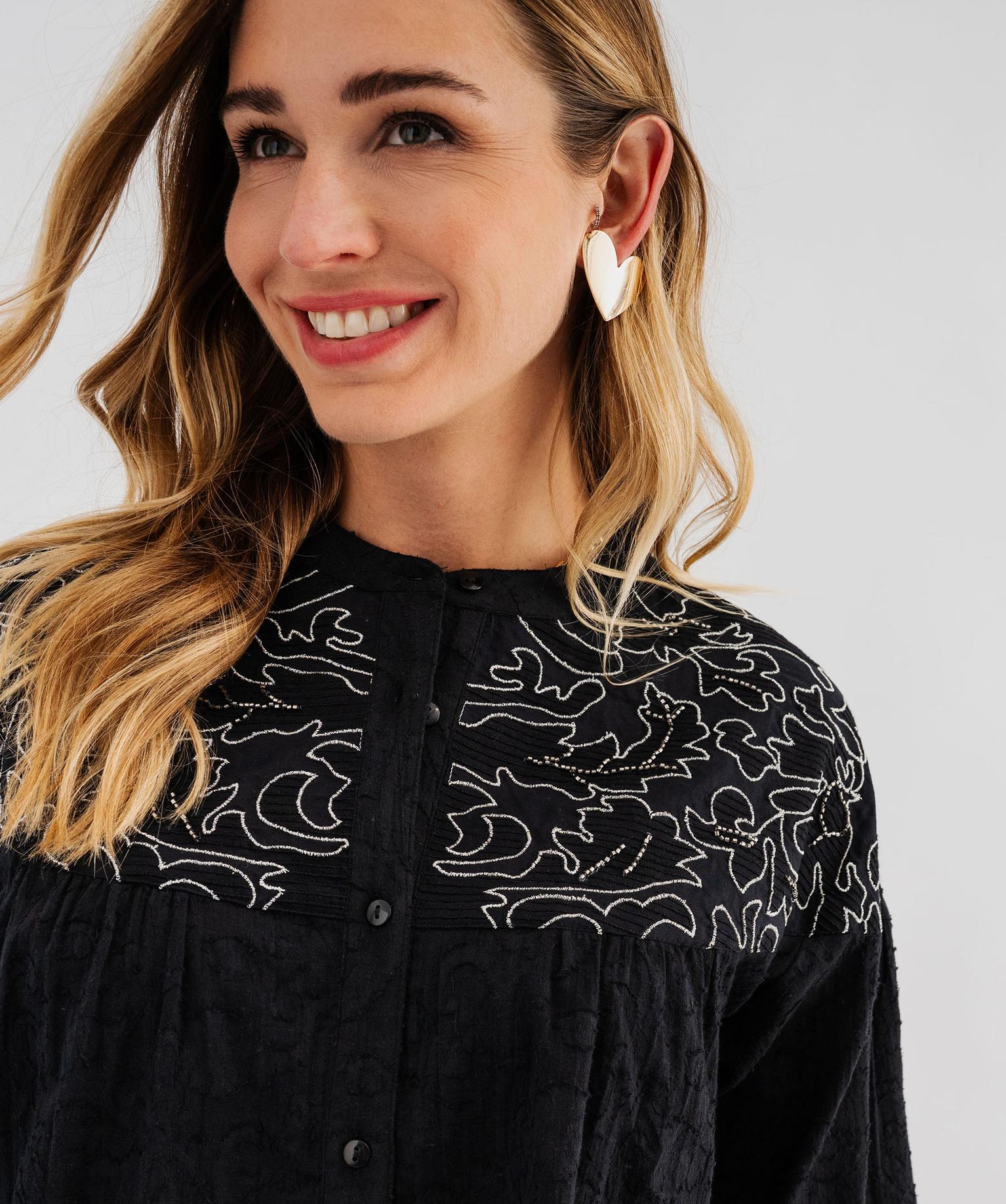 Chemise esprit bohème avec broderies femme noir
