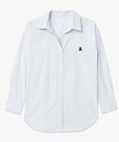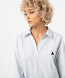 LuluCastagnette revisite la traditionnelle chemise rayée avec ce modèle à la fois élégant et décontracté inspiré du vestiaire des hommes. Une chemise oversize, avec épaules tombantes et deux plis creux dans le dos pour encore plus d’ampleur. Cette chemise pour femme, ornée d’un petit ourson Lulu brodé sur la poitrine, jouera les contrastes avec un jean slim. Bas arrondi. Poignets fermés par 2 boutons.