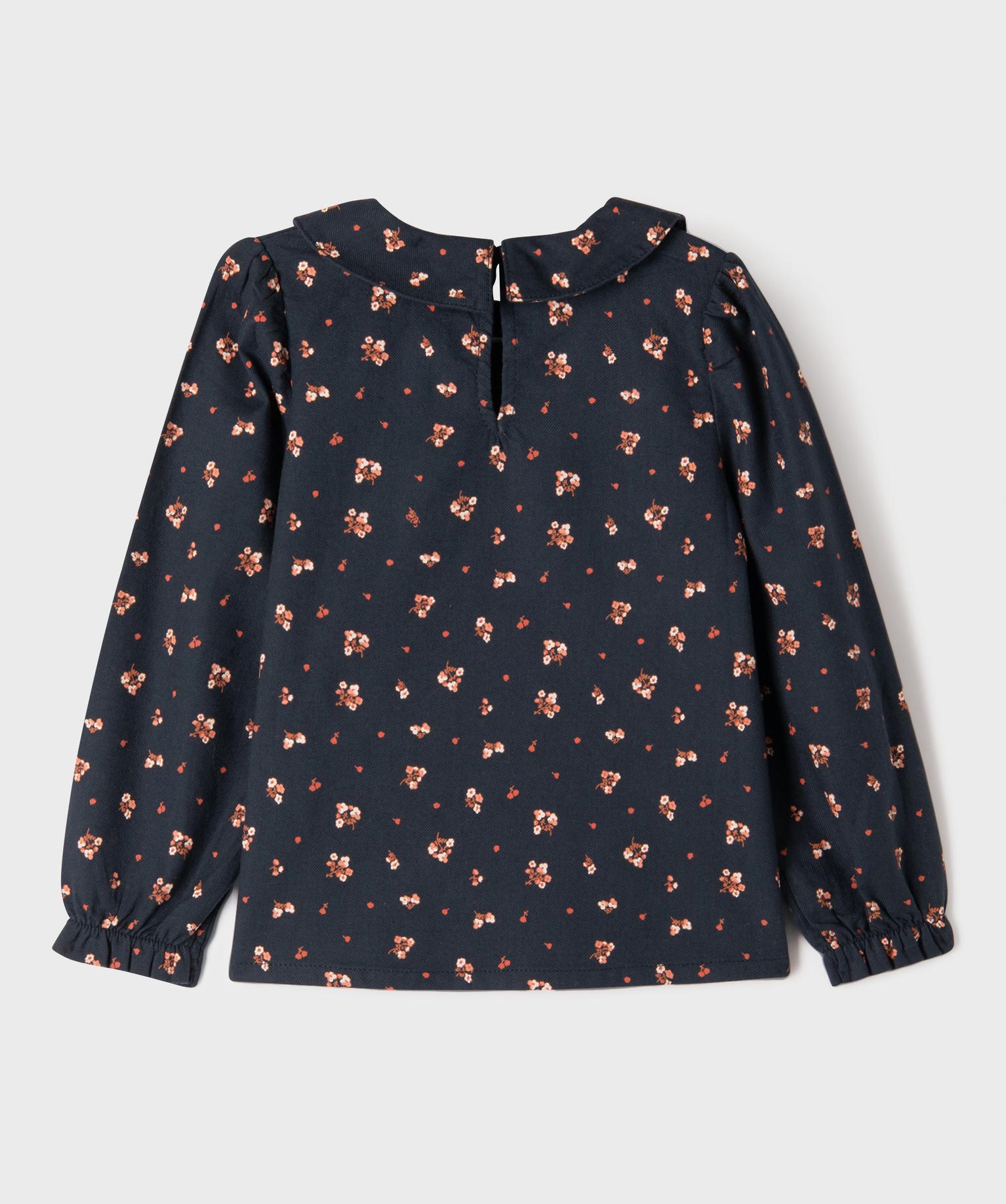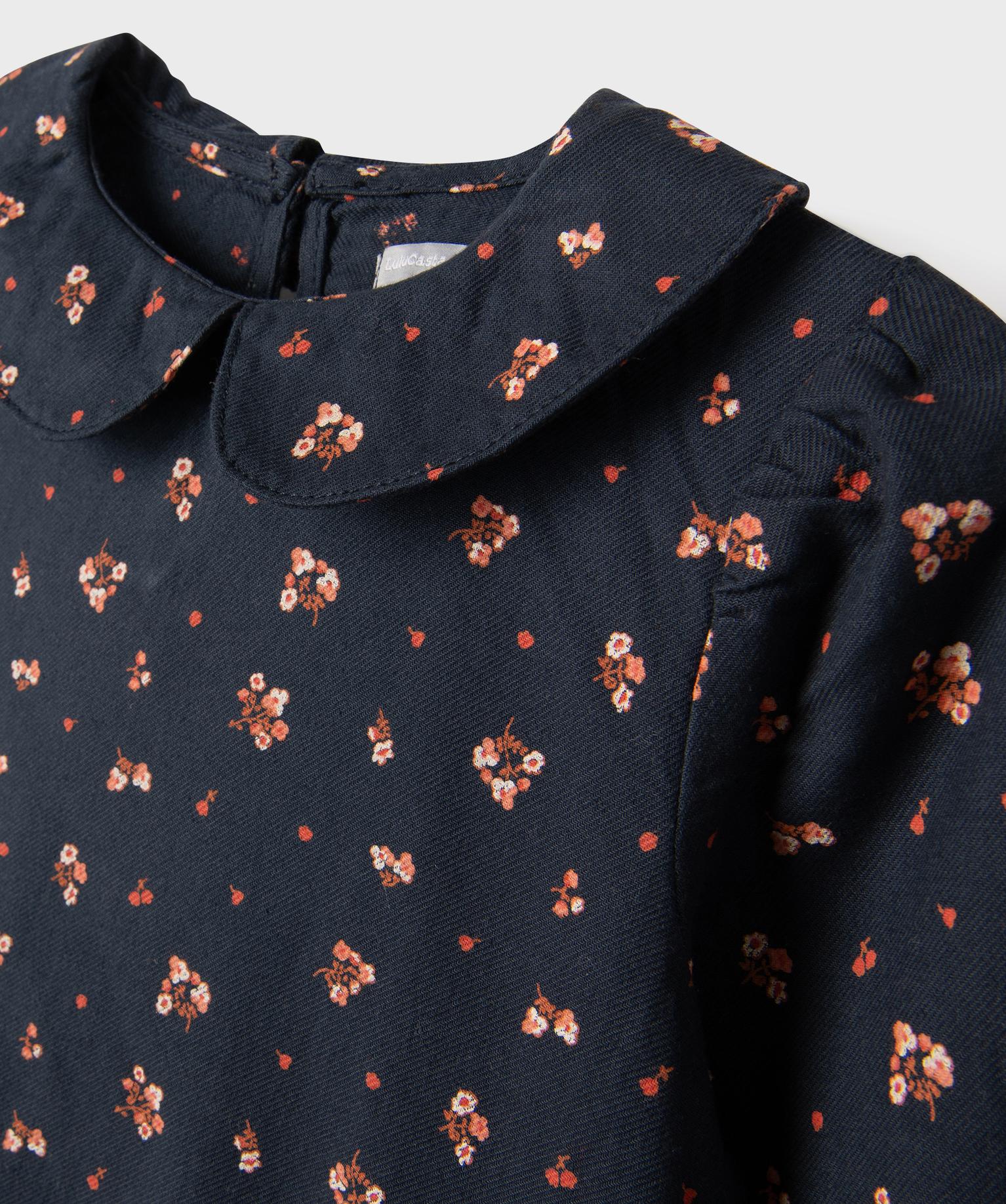 Chemise fleurie à col Claudine fille - LuluCastagnette bleu fonce