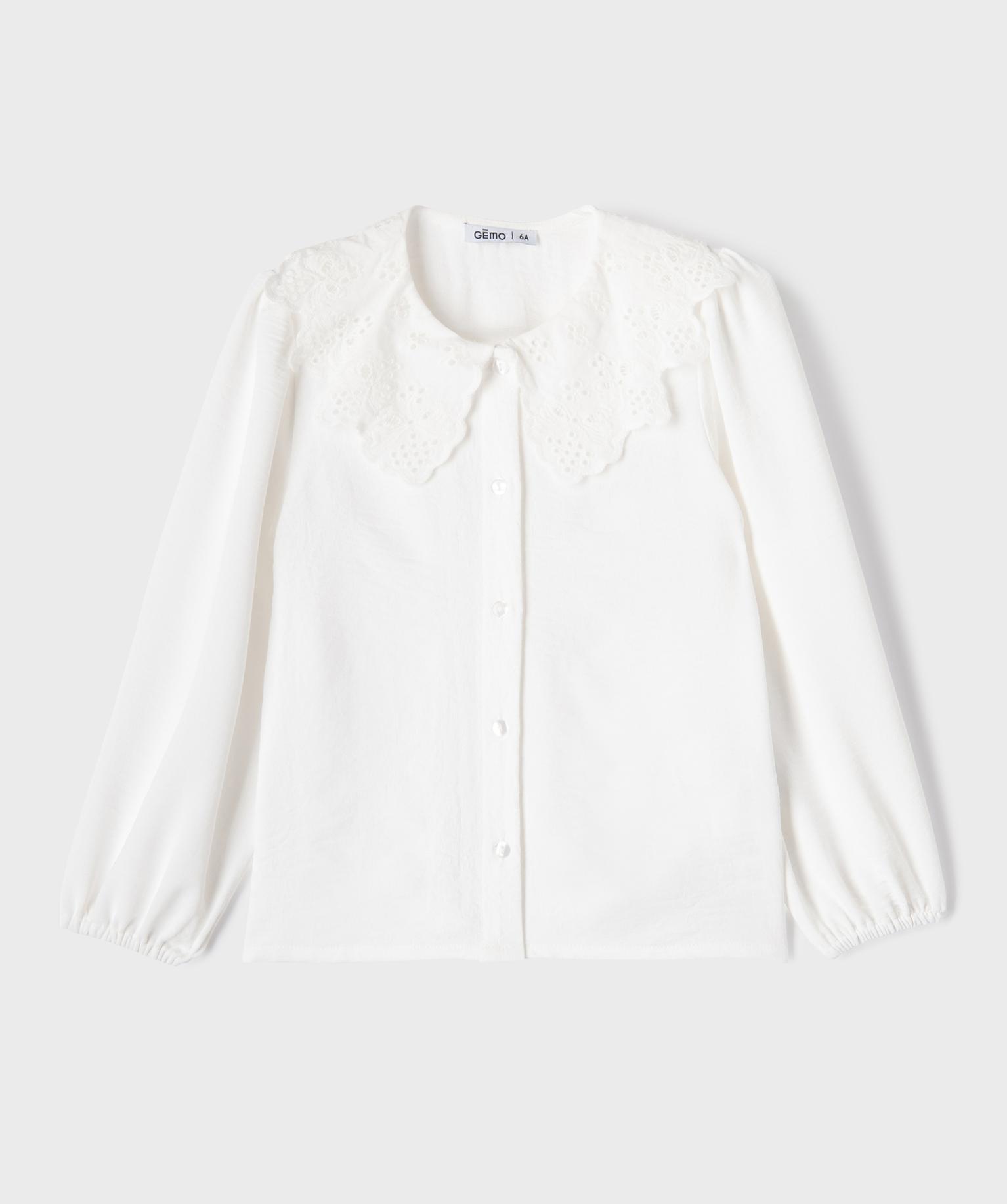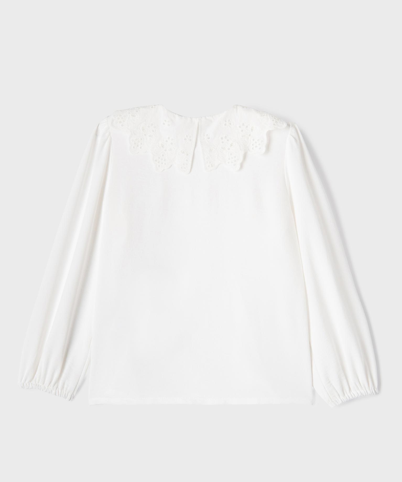Chemise fluide à col Claudine brodé fille blanc
