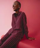 Chemise fluide à fines rayures femme rouge fonce